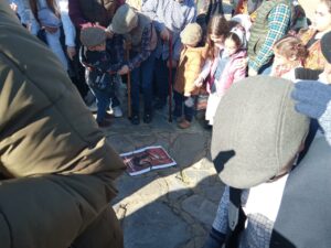 Y el 25 de enero, los alumnos del Colegio “Fernando el Católico” recorrieron el itinerario que hizo el monarca cuando, ya enfermo, fue llevado hasta la Casa de Santa María, donde falleció. En el camino, los niños hicieron cinco paradas, donde les esperaban cinco escenas de “modos de vivir de otros tiempos”. En cada escena, les recitaban un romance sobre el acontecimiento que tuvo lugar en Madrigalejo en 1516 y les entregaban una la pieza del puzle que debían completar con la figura del Rey Fernando el Católico. También colaboraron en esta actividad la Asociación Cultural de Mujeres, los grupos de Bolillos y Bordados, Cruz Roja y la Asociación Folclórica San Juan Bautista.